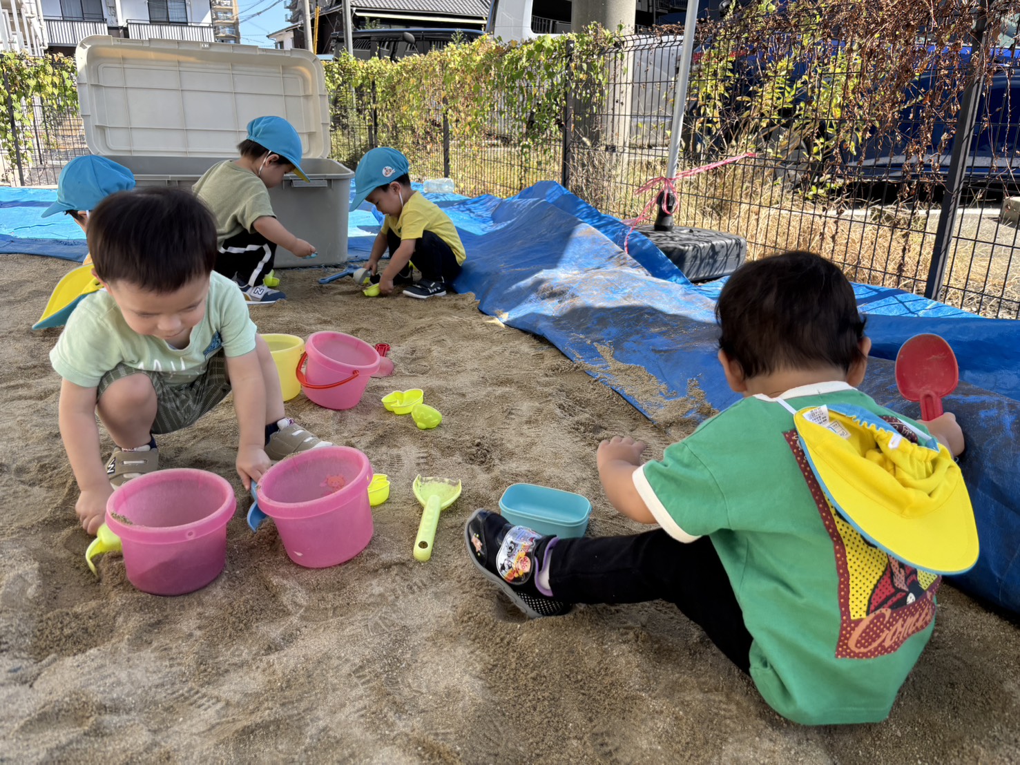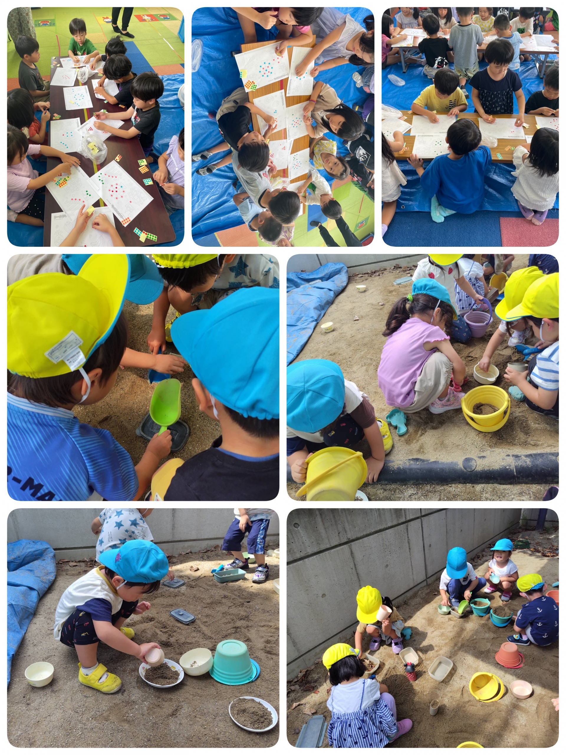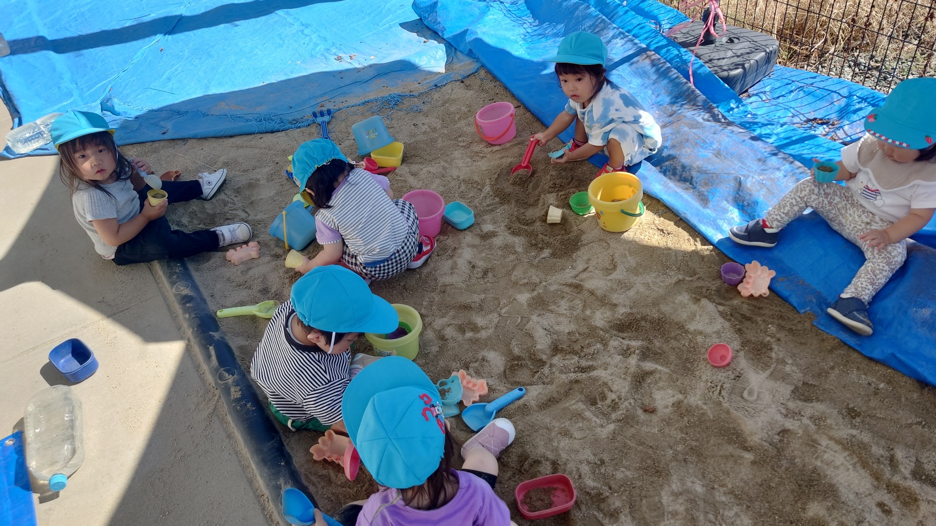 くじらさんはチームに分かれてすごし、絵画チームはお部屋で先生と絵画の続きをし、他のくじらさんはお砂場に出ました。