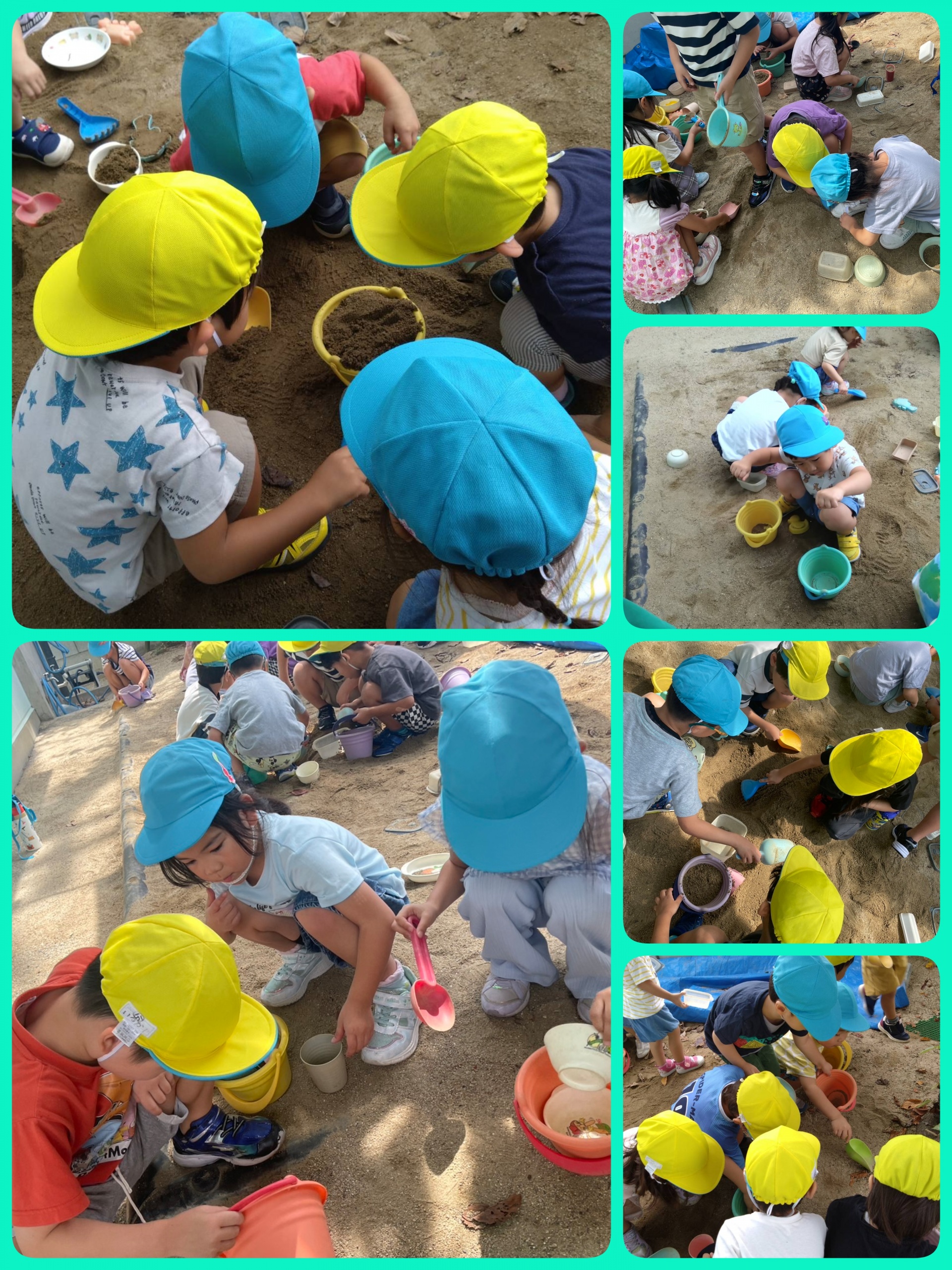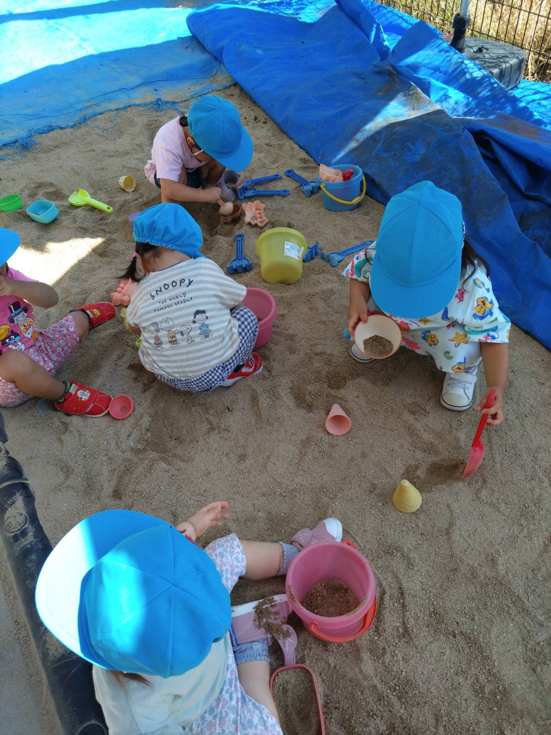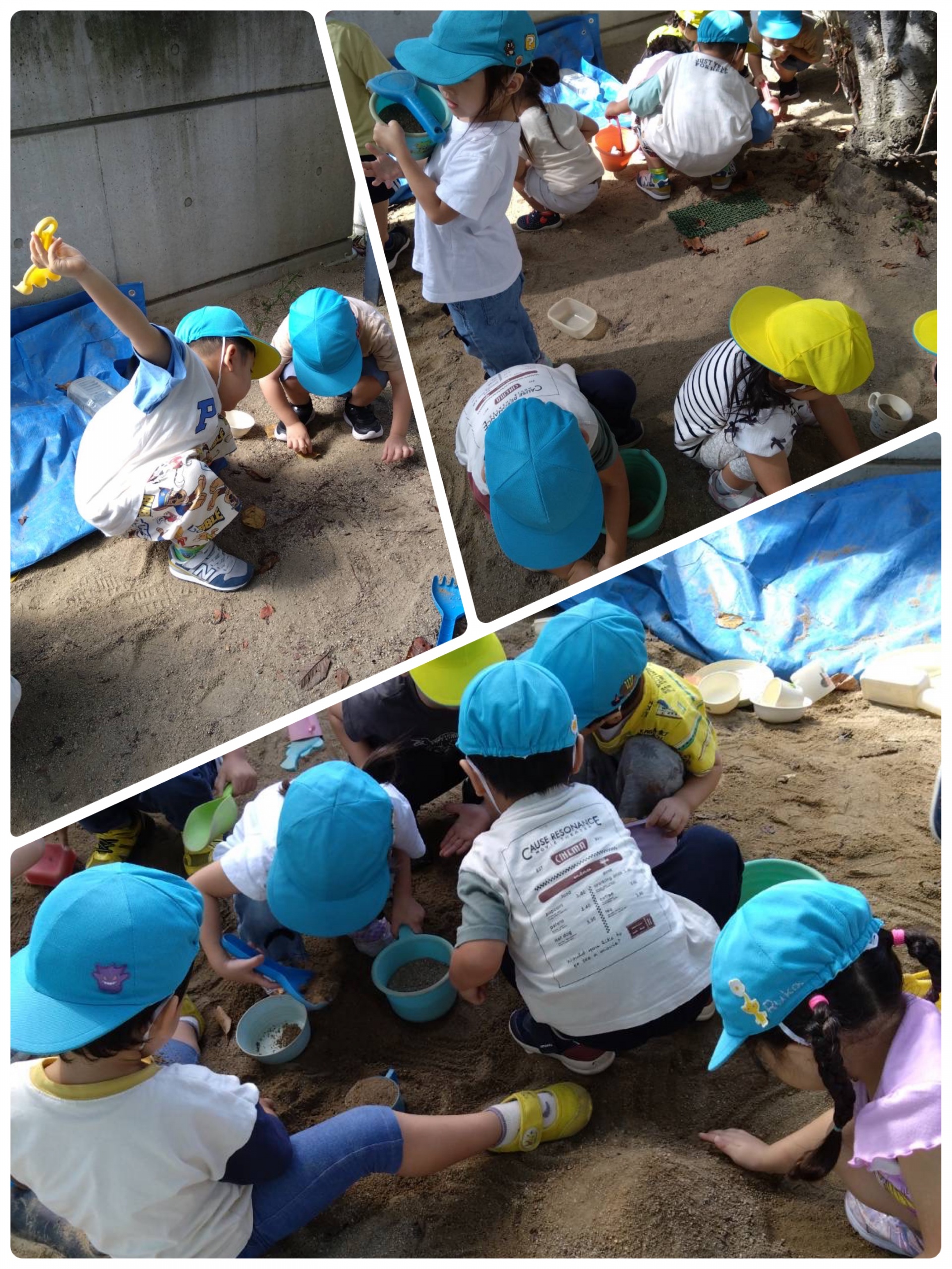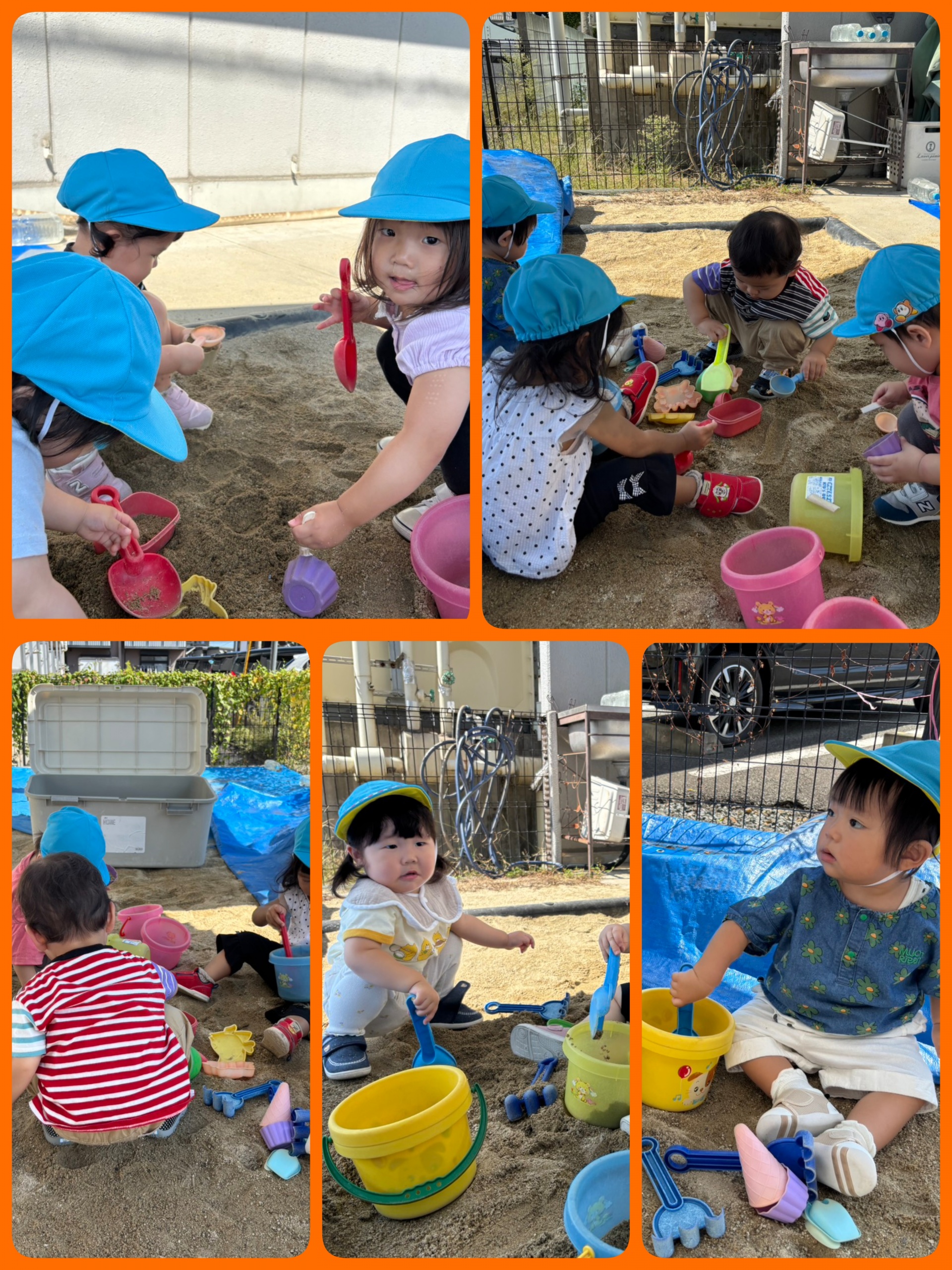 くじらさんはチームに分かれてすごし、絵画チームはお部屋で先生と絵画の続きをし、他のくじらさんはお砂場に出ました。