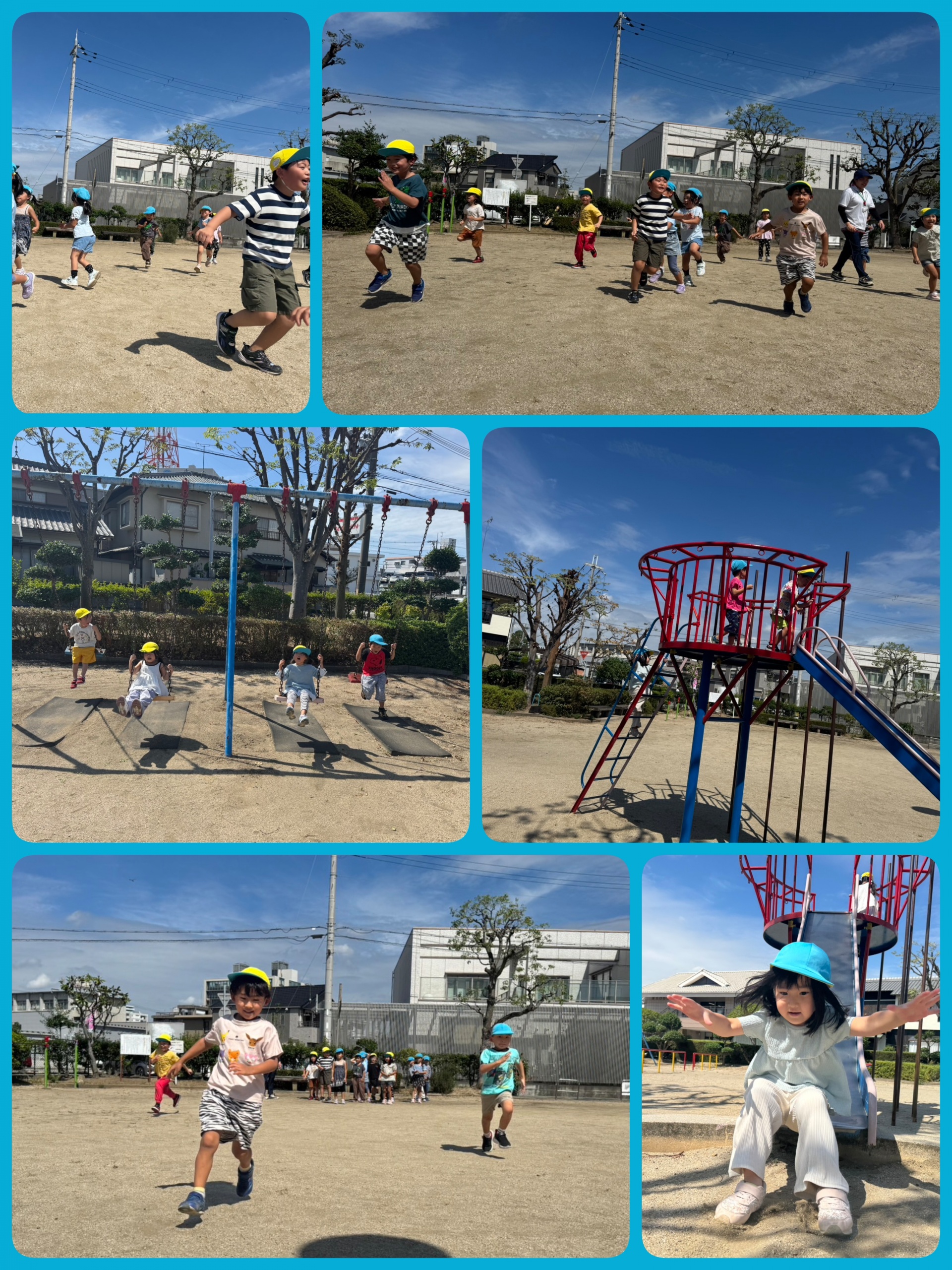 くもり空ですが、子どもたちは今日も元気いっぱいです。