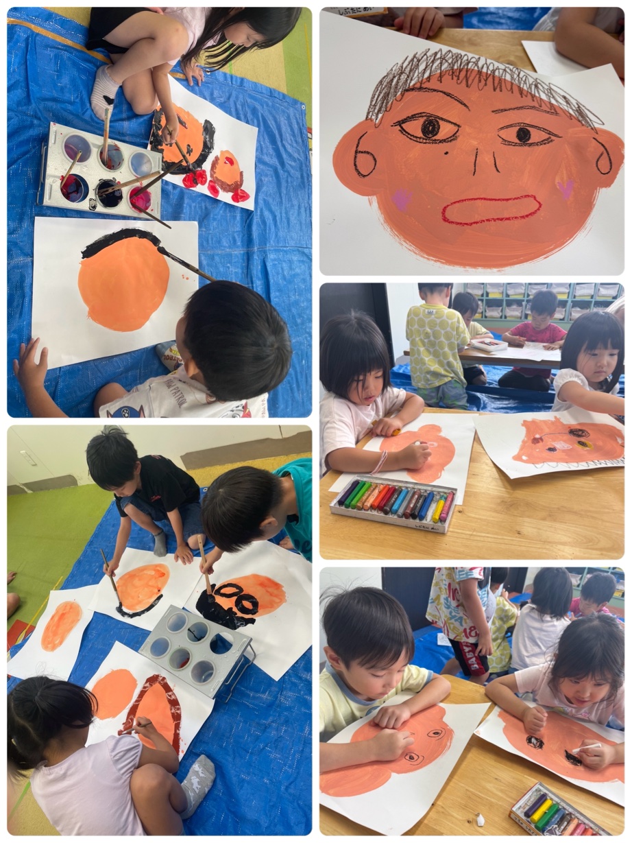 みんな筆を上手に使って絵の具で描くことを楽しんでいます。思い思いに表現していますね。