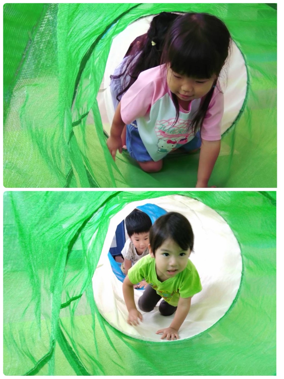 スポンジの平均台や、トンネルを使って、楽しみましたよ。