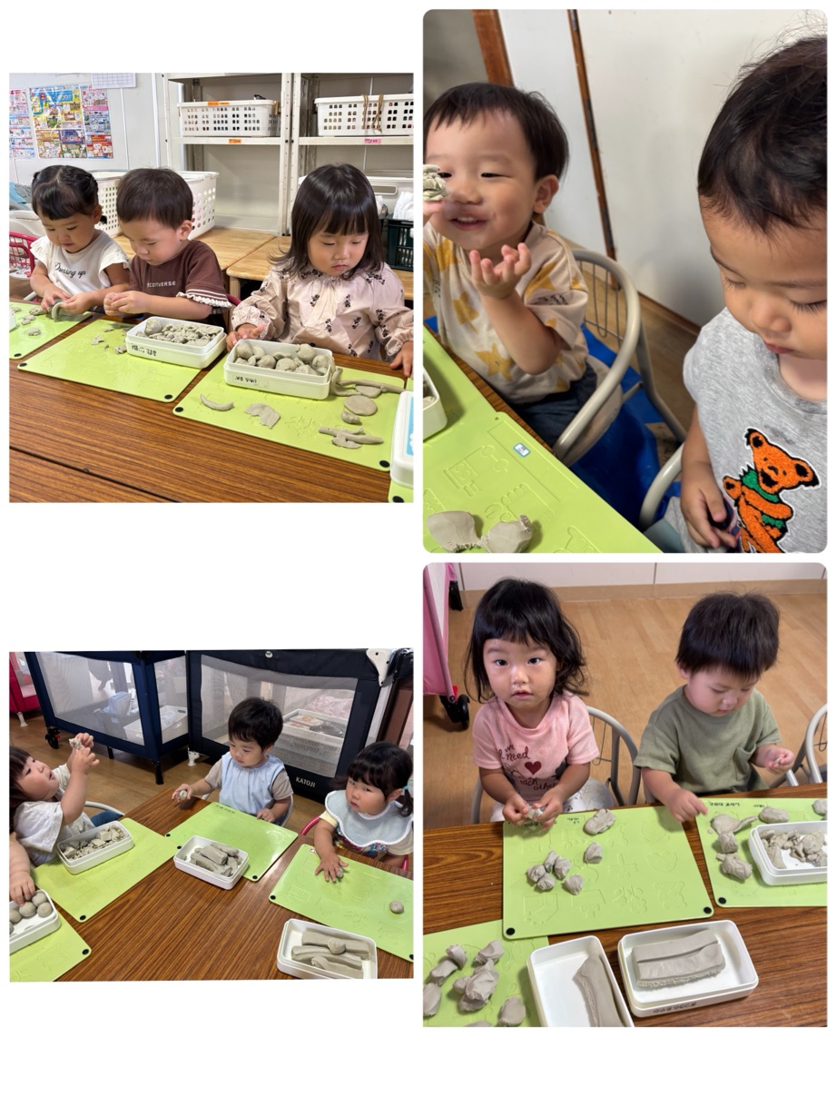 ちぎってみたり、みんな思い思いに粘土遊びを